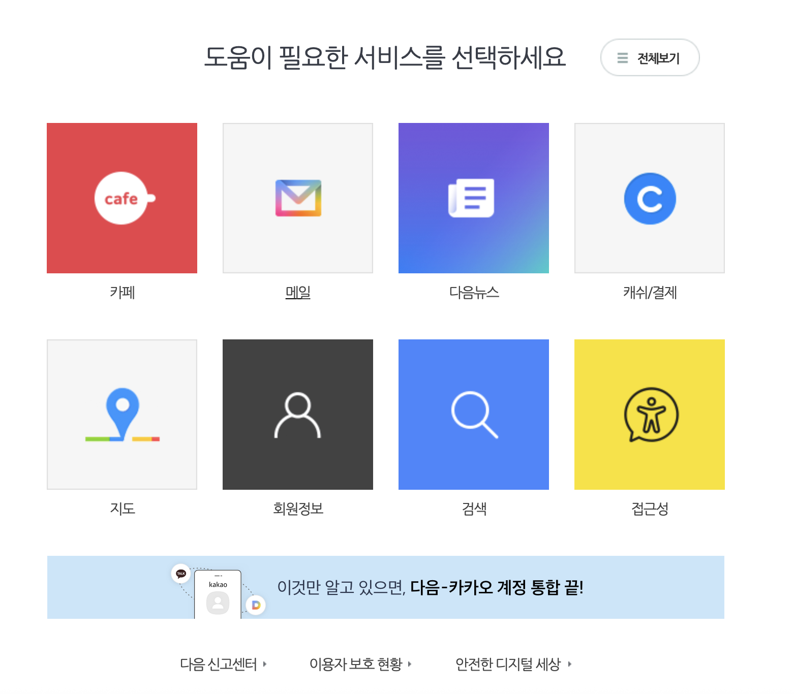 1. 다음 메일 고객센터 접속, 도움말이 필요한 카테고리 선택합니다.