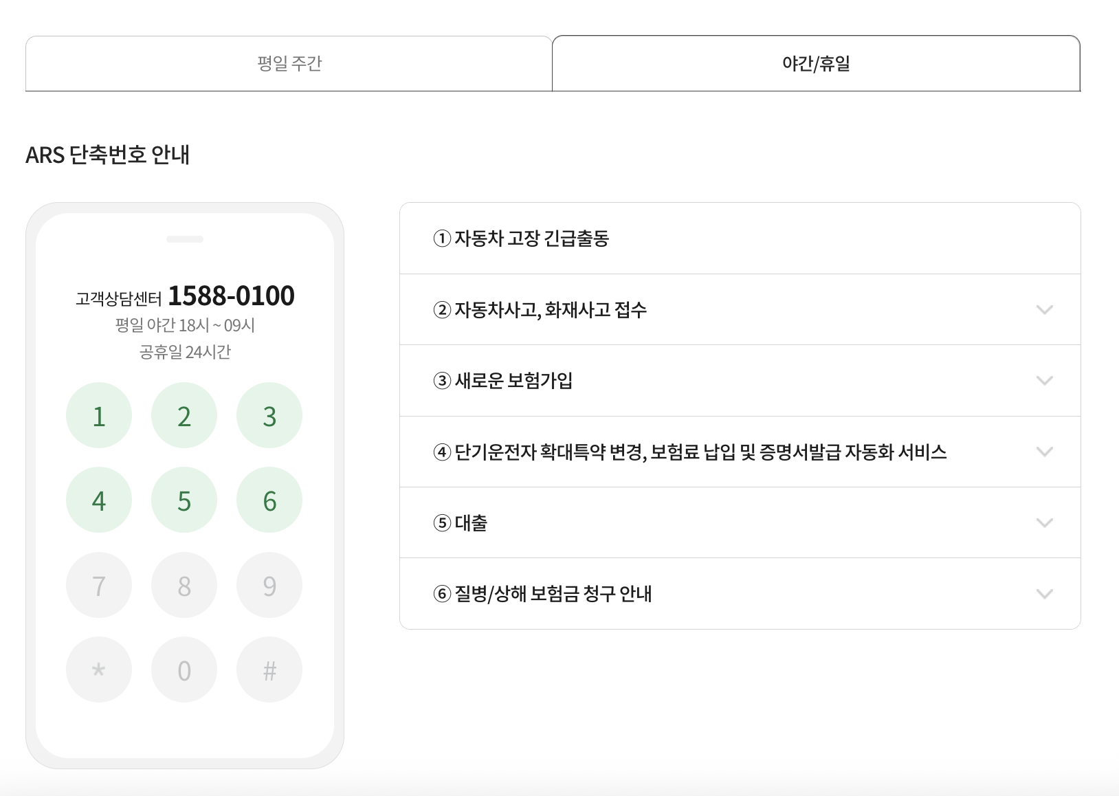 | 사고 접수 | 1588-0100 | 2번 | 24시간 |