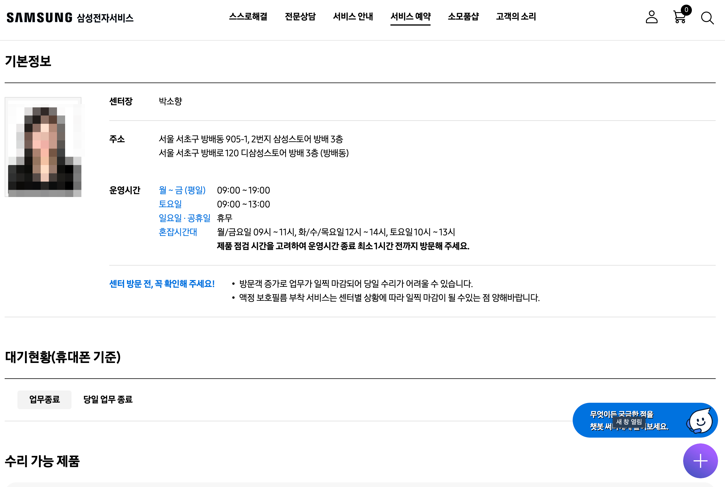 삼성전자 서비스센터 전화번호 및 운영 정보