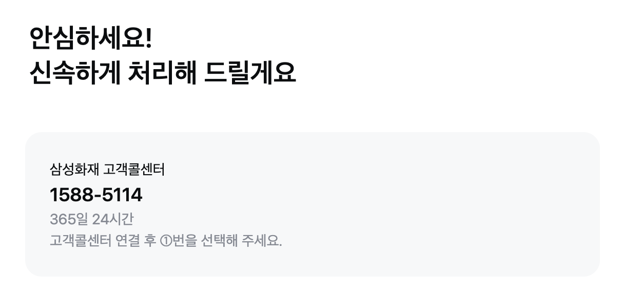 | 앱 다운로드 | “삼성화재” 앱 (플레이스토어/앱스토어) |