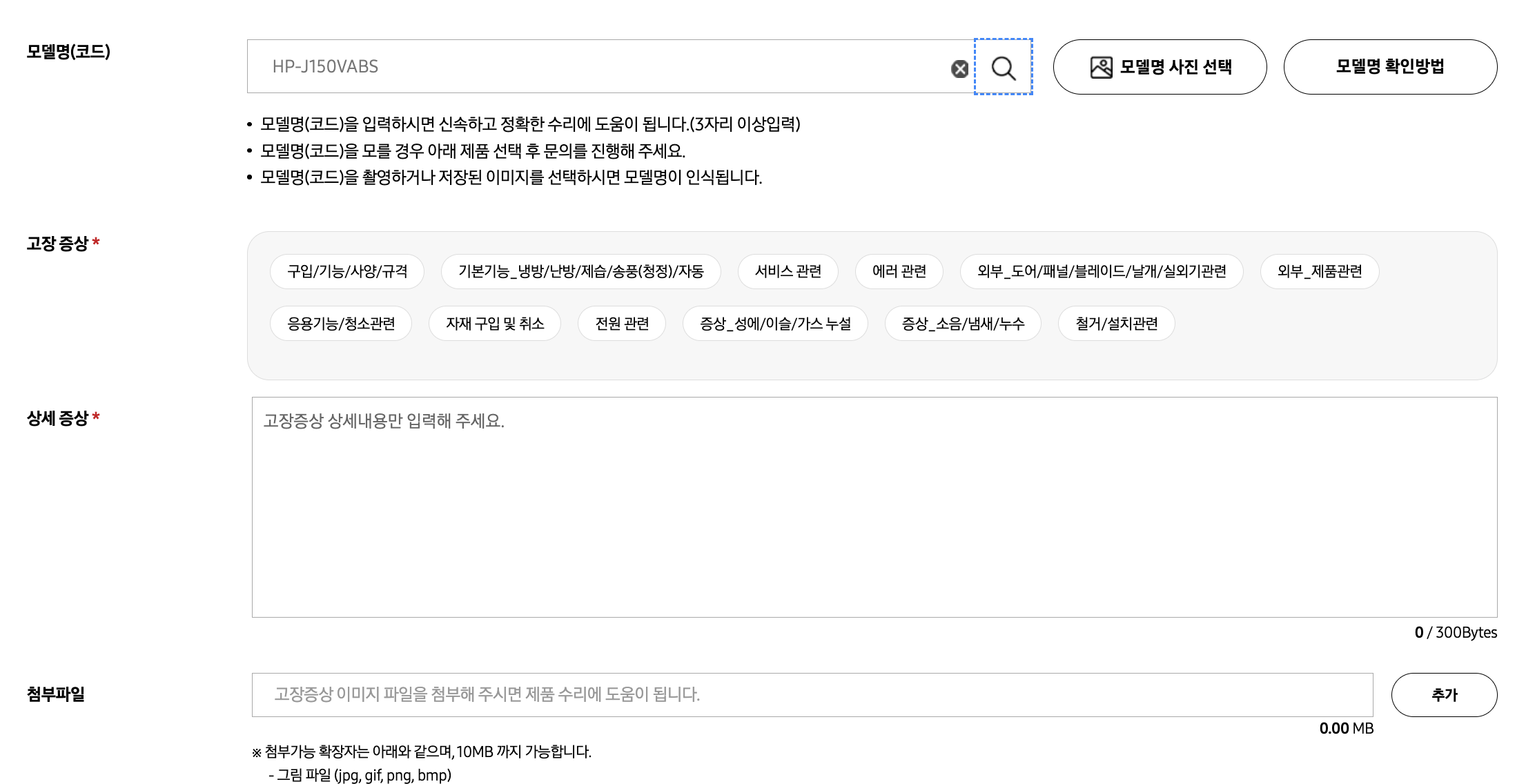 좀 더 상세하게 증상을 말씀드리고 싶고 사진이 준비되어 있다면 첨부파일도 활용해 주세요. 처뭅파일은 10메가까지 가능합니다.