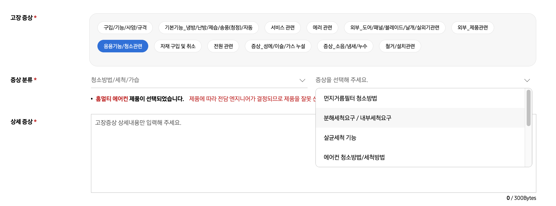 3. 고장증상, 상세증상 란을 채워주세요.