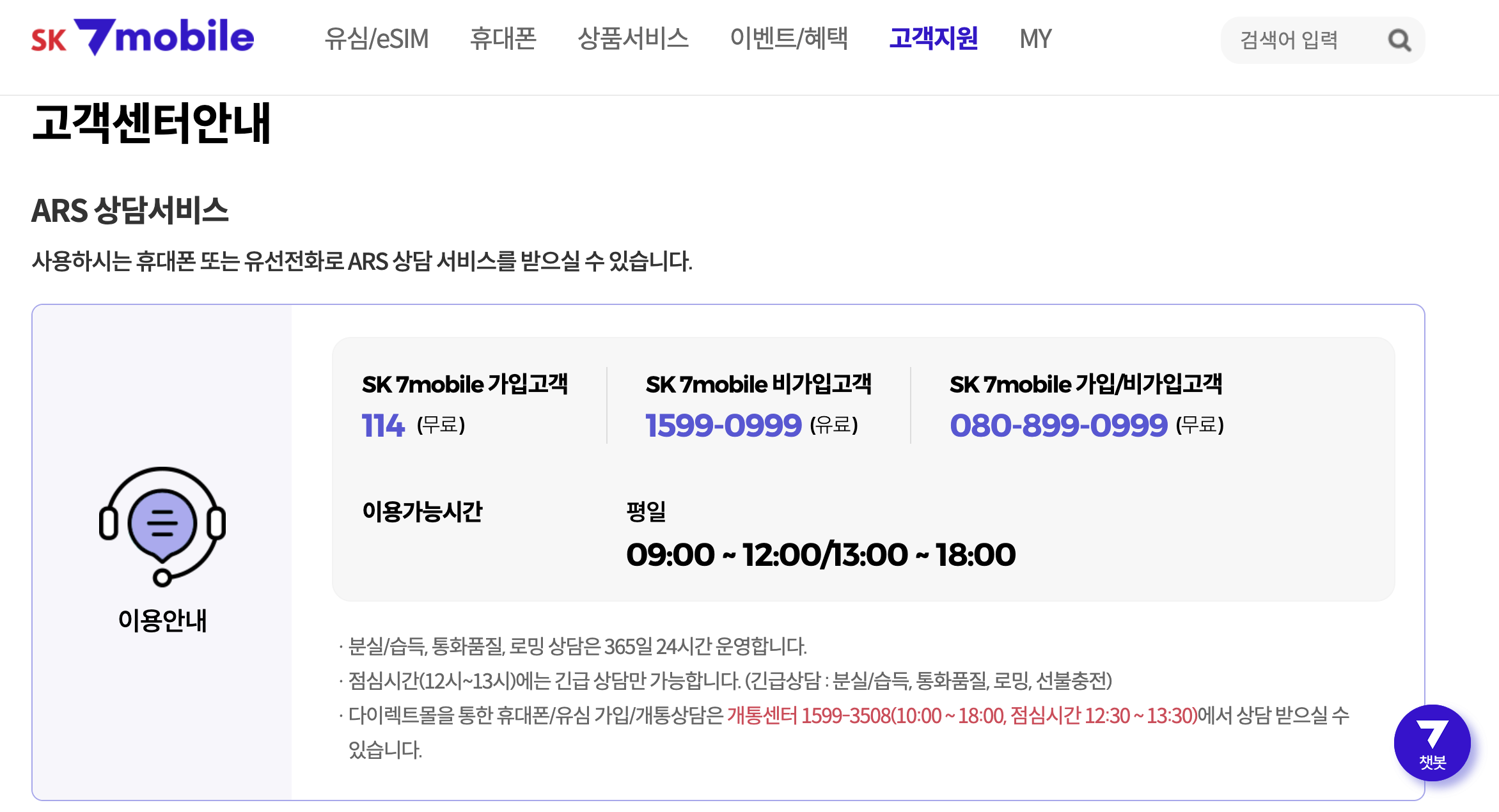 SK7 모바일 고객센터 연결이 잘 안 되는 요즘,